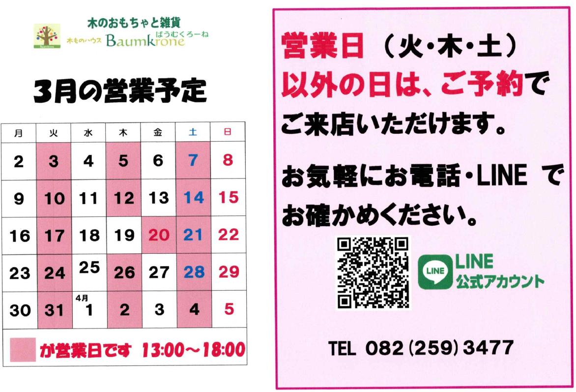 月の営業予定